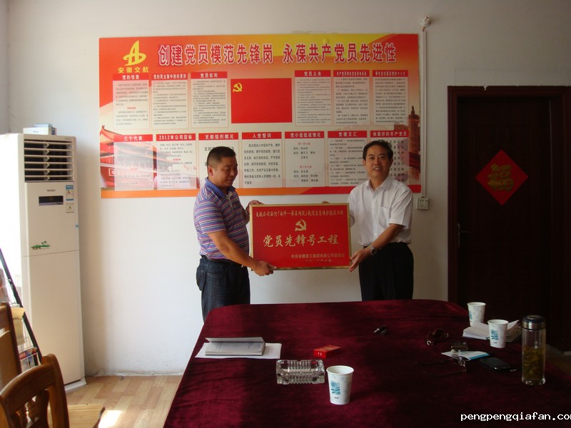 7月31日-8月1日,集团公司党委副书记、副董事长李长斌在党委工作部同志陪同下赶赴蚌埠和宿州,深入安徽水利和交航公司申报党员先锋号工程的三个项目部进行调研慰问和授牌。集团公司党委委员、董事、安徽水利总经理杨广亮,集团公司党委委员、副总经理霍向东,集团公司纪委书记、工会主席牛曙东出席了水利公司两个党员先锋号工程授牌仪式。交航公司党委副书记曹兴堂,纪委书记、工会主席王永来陪同参加浍河航道疏浚工程授牌仪式。
