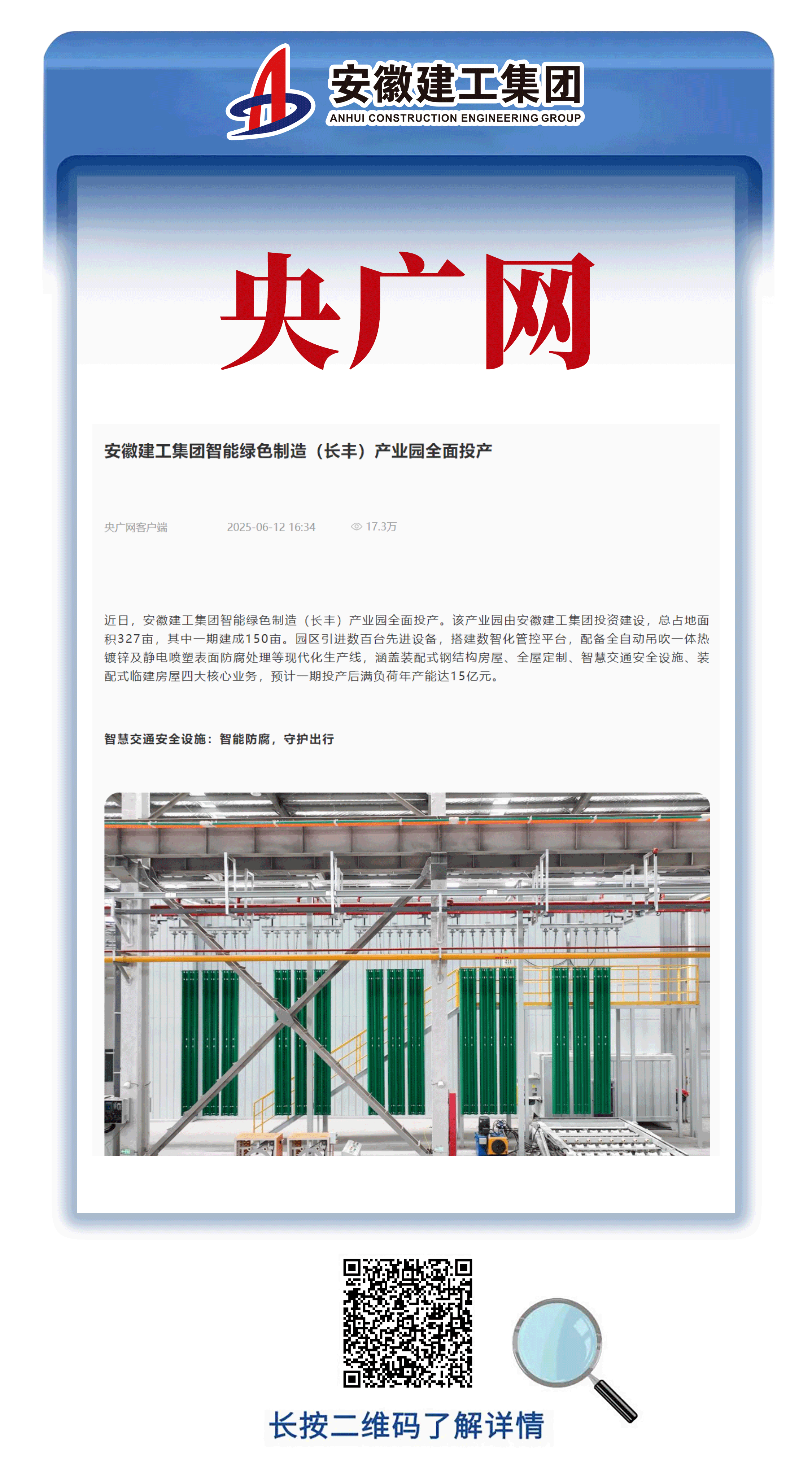 近日,18luck新利备用网智能绿色制造(长丰)产业园正式开园并全面投产,这一转型发展成果引发人民网、央广网、安徽日报等多家主流媒体的广泛关注与深度报道。各大媒体从产业创新、技术突破、绿色发展等多个维度,对产业园进行了全方位解读,展现了18luck新利备用网在智能制造领域的突出发展成就。